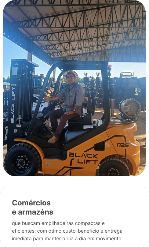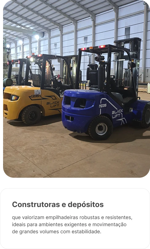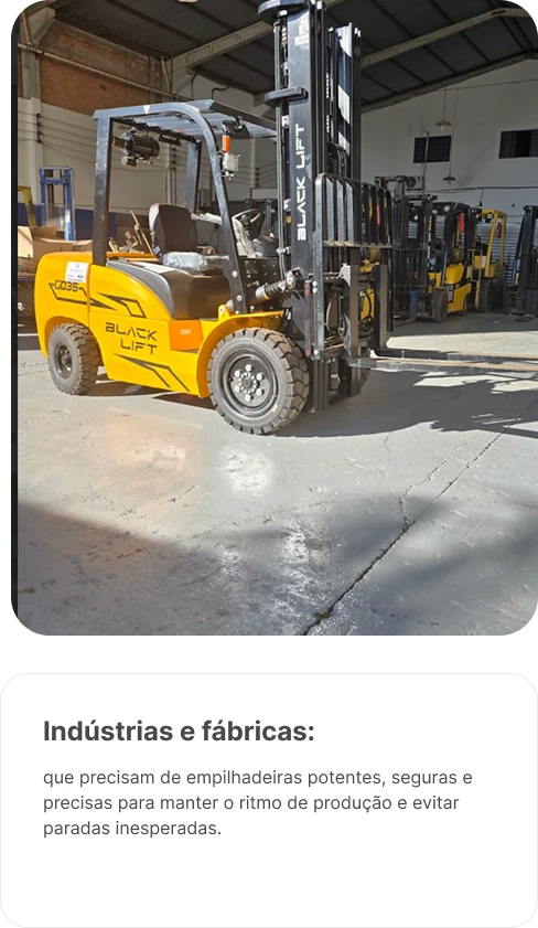 A Black lift é especializada na venda de empilhadeiras novas, com foco em entregar equipamentos prontos para uso, suporte técnico completo e atendimento direto.
